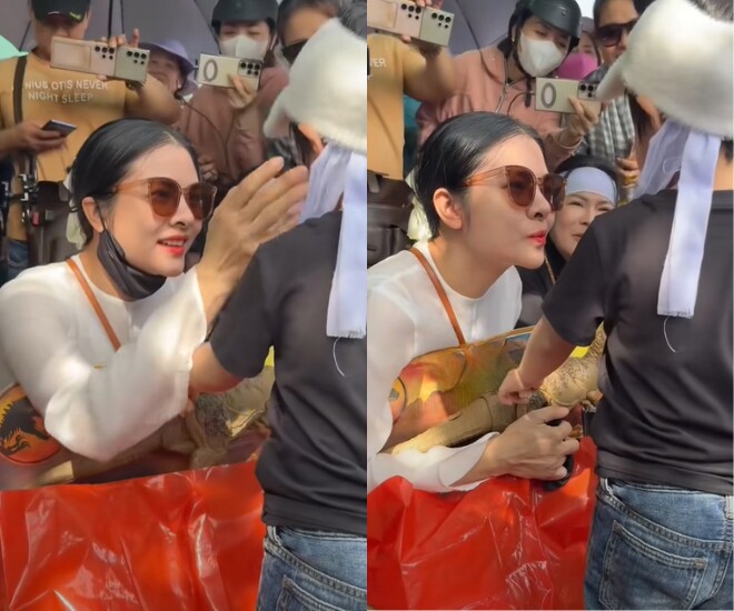 Một trong những khoảnh khắc đáng nhớ trong lễ thủy táng là sự xuất hiện của Vân Trang cùng bé Eric. Hình ảnh Vân Trang ân cần ôm bé, gọi Eric là “má”, đã thể hiện tình cảm ấm áp và sự gần gũi của cô với bé. Điều này không chỉ chạm đến cảm xúc của những người có mặt mà còn truyền tải thông điệp về tình yêu thương và sự sẻ chia trong lúc khó khăn.